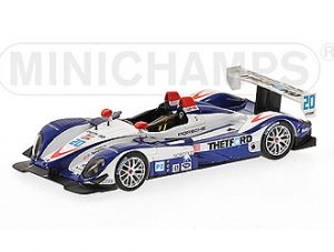 This Porsche RS Spyder (Dyson Racing Utah GP ALMS 2007) Diecast Model Car is Blue and White and has working wheels and also comes in a display case. It is made by Minichamps and is 1:43 scale (approx. 9cm / 3.5in long).