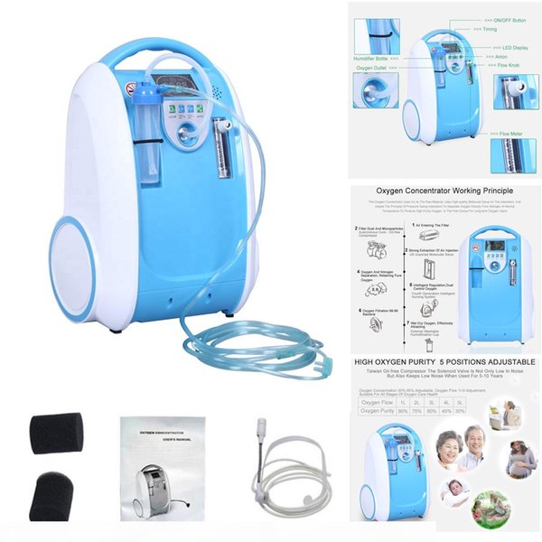 Portable Oxygen Concentrator Newly 1-5L Air Purifier Oxygen Generator PSA Oxygen Machine home travel use blue