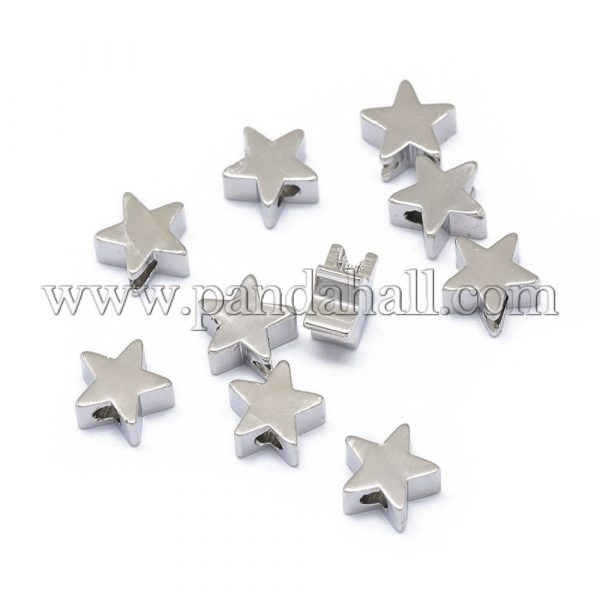 Rack Plating Brass Beads, Long-Lasting Plated, Five-Pointed Star, Real Platinum PlatedSize: about 6mm in diameter, 3mm thick, hole: 1.6mm.