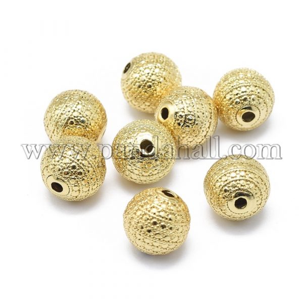 Rack Plating Brass Beads, Long-Lasting Plated, Round with Dot, GoldenSize: about 9mm diameter, hole: 2mm.
