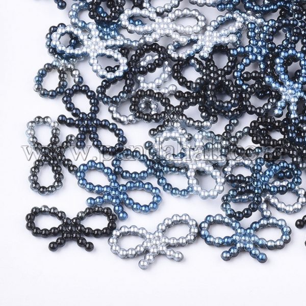Rainbow ABS Plastic Imitation Pearl Links, Gradient Mermaid Pearl, Bowknot, Mixed ColorSize: about 18.5mm long, 10mm wide, 2mm thick, hole: 5x3mm; about 1000pcs/bag.