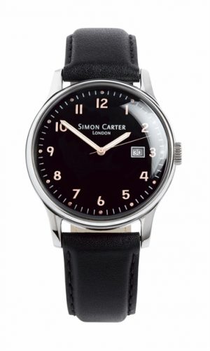 All stainless watch, quite deep at around 10mm, conspicuously domed glass, case diameter is 40mm, 20mm genuine leather padded strap. Date window at ‘3’, all Arabic raised formed (not printed) gold numerals somewhat in the manner of a vintage Tudor, and lightly ‘sunburst’ black brushed face. 5ATM, screw back.