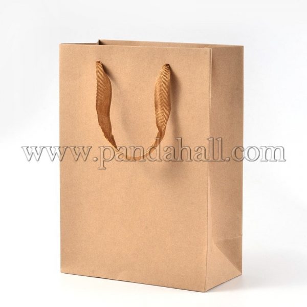 Rectangle Kraft Paper Bags with Handle, Retail Shopping Bag, Merchandise Bag, Gift, Party Bag, with Nylon Cord Handles, BurlyWoodSize: about 120mm wide, 160mm long, 57mm thick.