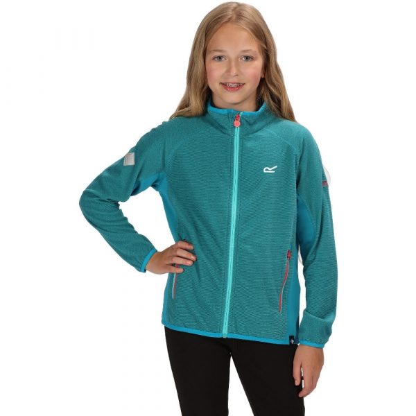 The Regatta Boys & Girls Pira Micro Fleece Zip Pocket Stretch Jacket has been made using 140gsm mini stripe microfleece. It comes with extol stretch side and underarm panels as well as a couple of zipped lower pockets. Stretch binding has been done to collar cuffs and hem. It is an ideal jacket for you to own this winter., 140gsm mini stripe microfleece., Extol stretch side and underarm panels., 2 zipped lower pockets., Stretch binding to collar cuffs and hem.