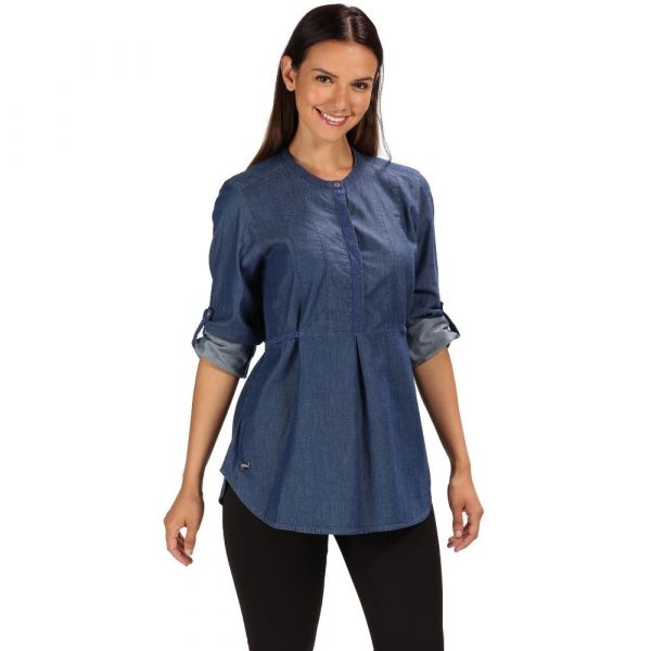 The Regatta Women’s Maladee Tie Back Tunic should be included in your summer wear collection. It is crafted from coolweave cotton voile fabric that makes it lightweight and soft for superior comfort all day long. Its long sleeves can be turned and button-fastened to turn them into ¾ sleeves. You can tie belt at waist to achieve a stylish silhouette., Coolweave cotton lightweight voile fabric with all-over print. Coolweave cotton chambray., Ticking stripe fabric. Cotton dobby fabric., Turn up cuffs with button fastening. Tie belt at waist., ,