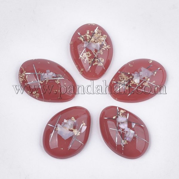 Resin Cabochons, with Shell, Gold Foil and Silver Thread, Oval, IndianRedSize: about 24mm long, 17mm wide, 6mm thick.
