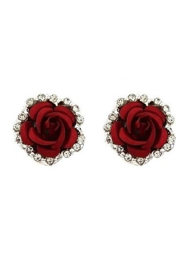 Rhinestone Embellished Rose Shape Ear Studs for Lady FREE Shipping & 30 Days Easy Return