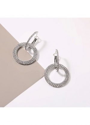 Rhinestone Embellished Round Shape Silver Earrings FREE Shipping & 30 Days Easy Return
