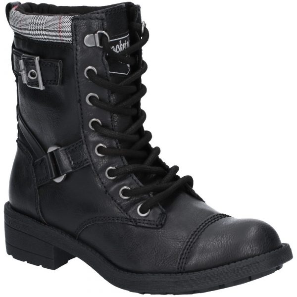 Rocket Dog’s Thunder boot allows you to add an edgy touch to your outfit with a lace-up front and tonal shades that set it apart from the pack. Throw these on along with practically any outfit or style and their sleek finish will fit right in. The buckle and strap detail along with the constrast upper stitching complete the design., Contrast colour detail., Buckle and strap detail., Contrast upper stitching.