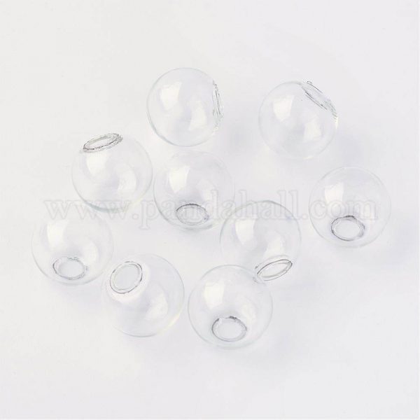 Round Mechanized Blown Glass Globe Beads, for Stud Earring Fings or Crafts, Half Drilled, ClearSize: about 16mm in diameter, Half Hole: 3~5mm.