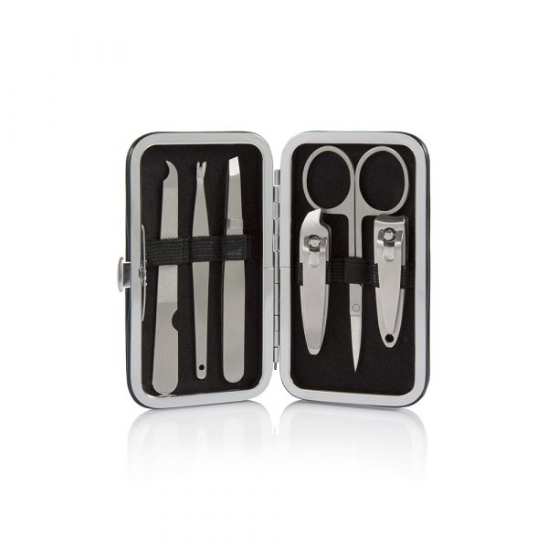 a set of 6 essential grooming tools conveniently stored in a handy storage purse