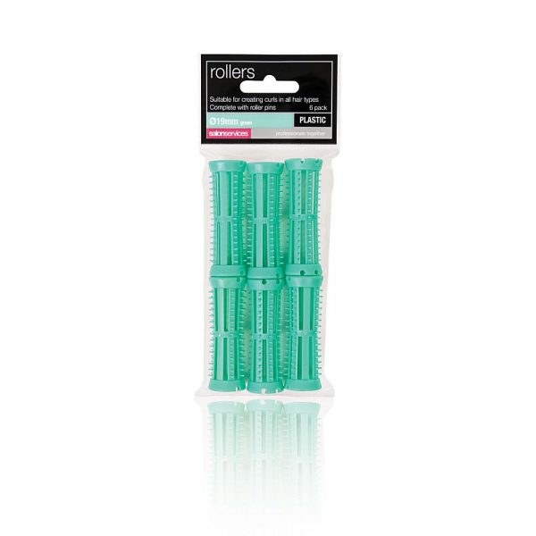 salon service plastic rollers green width 19mm usable on wet or dry hair a pack of 6