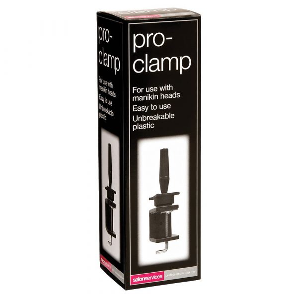 Salon Services Training Head Clamp is a professional tool for securing manequin heads. Comes in black. Easy to use. Unbreakable plastic.