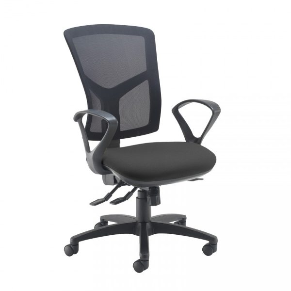 Comfort, reliability and affordability are the key attributes of the Senza operators chair with its curvaceous profile and vast array of options that deliver style as well as substance. Equipped with ergonomic features, a high back, extra high back and mesh back options, this operators chair easily provides the comfort needed for a long day at work.Features Asynchro mechanism provides free floating back action, lockable seat and back Back rake and back height adjustment CMHR high resilience, flexible foam seats for enhanced comfort High mesh back fabric operator chair with upholstered seat and back Independent seat tilt adjustment Ratchet back height with gas lift adjustment