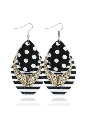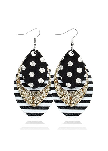 Sequin Detail Striped Layered Black Earring Set FREE Shipping & 30 Days Easy Return