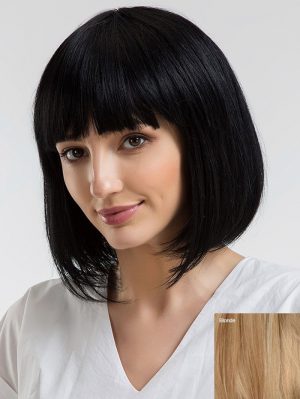Short Neat Fringe Straight Bob Capless Human Hair Wig