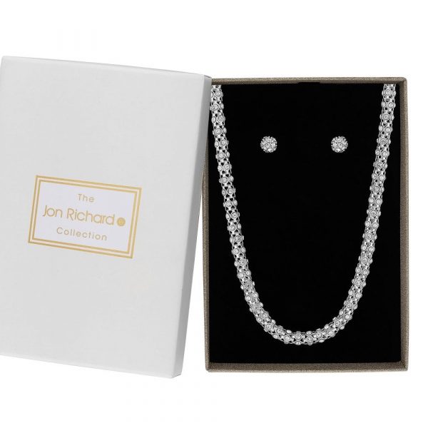 Silver Plated Clear Crystal Pop Corn Mesh Necklace With Ball Matching Set