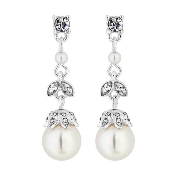 Silver Plated Clear Pearl Crystal Acorn Drop Earring