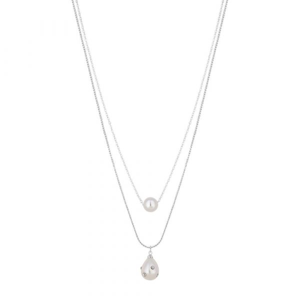 Silver Plated Clear Spot Pearl Short Pendant Necklace