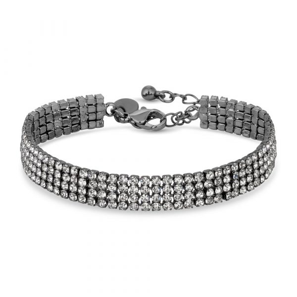 Encrusted with diamantes for ultimate sparkle, our hematite crystal diamante bracelet is a contemporary classic. This art deco-inspired design can be worn alone for a simple and chic finish to your outfit or worn with the matching necklace to complete your look. Featuring a lobster clasp.