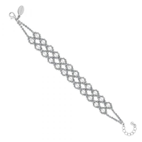 Silver Plated Diamante Crystal And Pearl Bracelet
