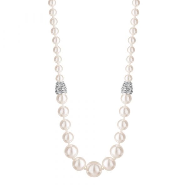 Be the first to review “Silver Plated Pave Crystal And Cream Pearl Graduated Necklace”