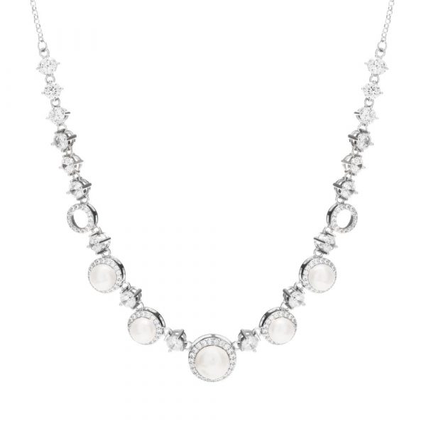 Silver Plated Pearl Halo Necklace