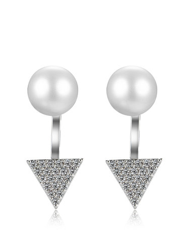 Silver Triangle Zircon Pearl 925 Sterling Silver Earrings