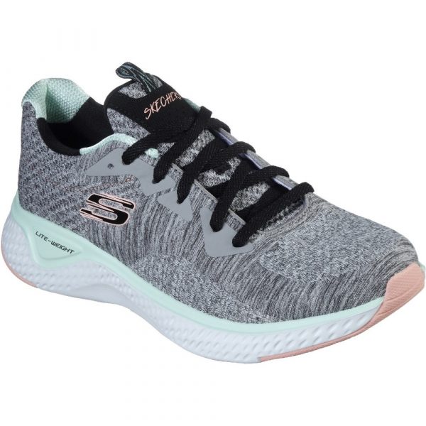 ., Soft woven athletic circular knit nearly one piece fabric upper. Lace up sporty training and walking sneaker design., Sleek hot-melt synthetic overlay trim at laces. Circular knit for smooth feel and cooling effect., Woven two-colour heathered detailing. Interwoven ventilating front and side panels., Padded collar and tongue. Tongue panel fabric pull on top tab., Soft fabric shoe lining. Air Cooled Memory Foam cushioned comfort insole.