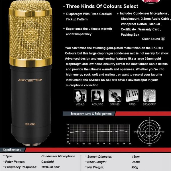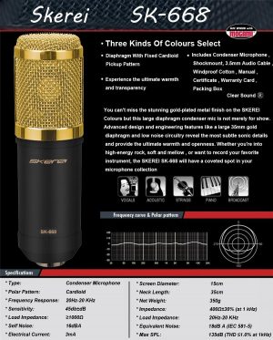 Be the first to review “Skerei SK668 Top Quality Professional Wired Cardioid Directivity Computer Studio Recording Condenser Microphone For Studio Stage”