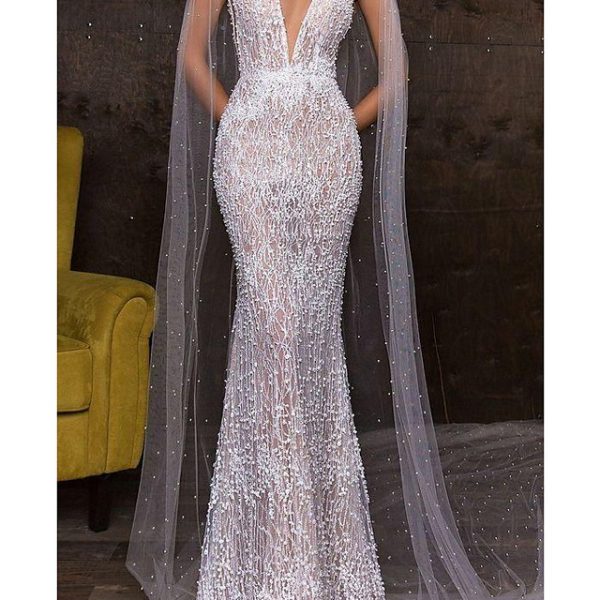 Be the first to review “Sleeve Lace Trumpet Wedding Dress With Long Train”