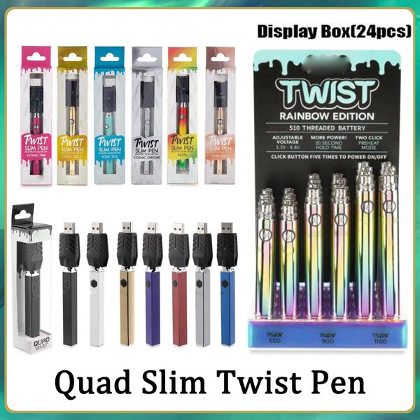 Slim Twist Pen Quad Twist Preheat Battery 650mah 900mah 1100mah With Display Box Variable Voltage 510 thread Vape PK Vision Spinner Vmod