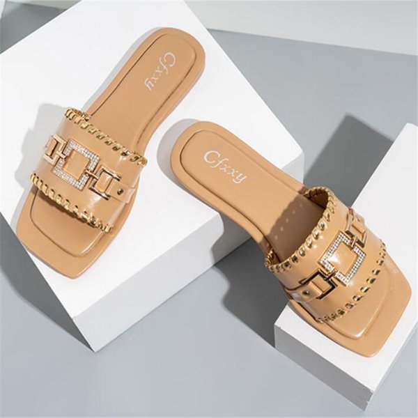 Slippers Flip-flops Flat Sandals Women's Casual Square Buckle Diamonds Outdoor Beach Slipper