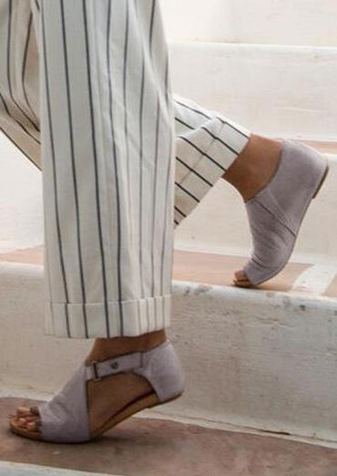 Solid Buckle Round Toe Flat Sandals – Light Purple