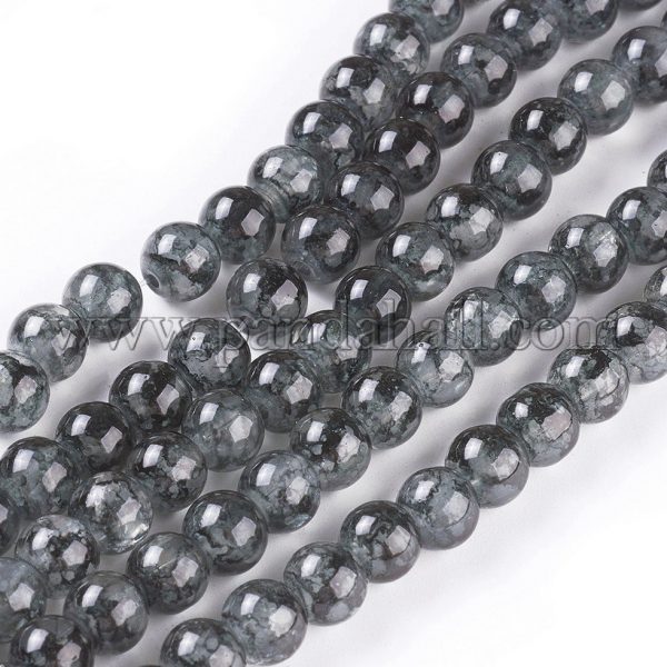 Spray Painted Glass Beads Strands, Dyed, Round, BlackSize: about 6~6.5mm in diameter, hole: 1mm, about 137pcs/strand, 31.8″(81cm).