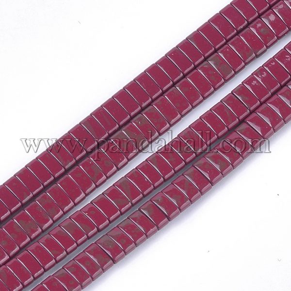 Spray Painted Non-magnetic Synthetic Hematite Multi-Strand Links, For Tile Elastic Bracelets Making, Rectangle, BrownSize: about 2mm long, 5mm wide, 2mm thick, hole: 0.6mm; about 172pcs/strand, 16.1″.