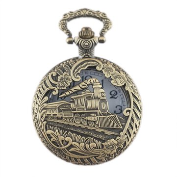 Steampunk Hollow Train Pattern Classic Simple Dial Chain Retro Quartz Pocket Watch
