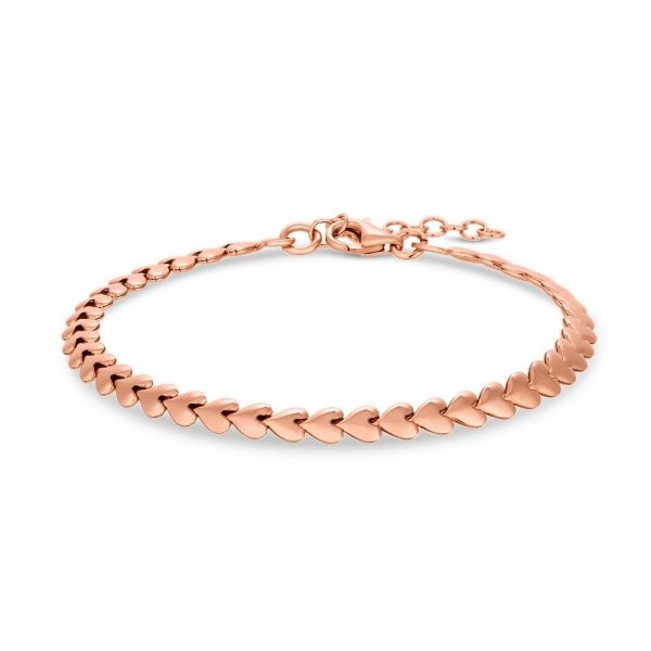 Sterling Silver 925 14Ct Rose Gold Heart Row Bracelet