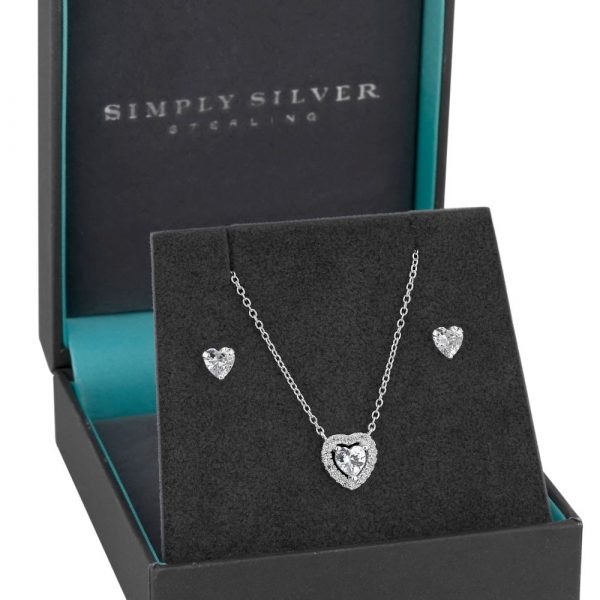 Sterling Silver 925 Cubic Zirconia Halo Heart Set