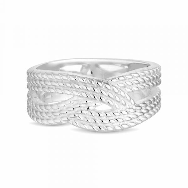 Sterling Silver 925 Polished Rope Crossover Ring