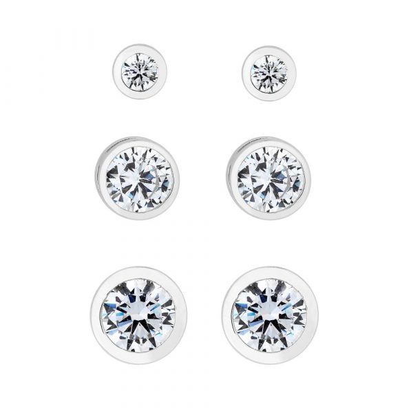Sterling Silver 925 White Cubic Zirconia Besel Set 3 Pack Stud Earring