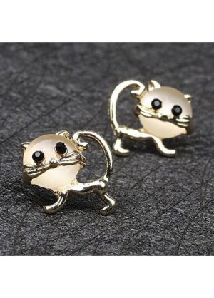 Stone Decorated Cat Shape Desgin Earrings FREE Shipping & 30 Days Easy Return