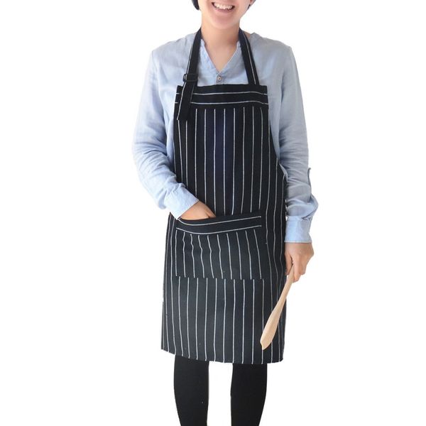 Strip Coverall Aprons with big Pockets Denim Jean Kitchen Apron for Women and Men 31 x 27" Father Gift Chef Cooking Artist Painting 122241