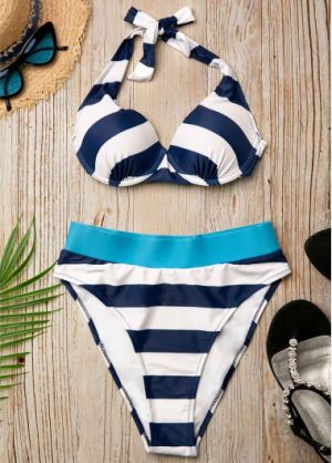 Be the first to review “Striped Navy Blue High Waist Two Piece Bikini”