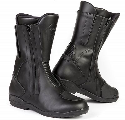 Upper: water repellent full grain leather Lining: breathable and waterproof Integrated protectors on the tibia (thermoformed PU) and ankles (PU), PU shifter protection Attachment: zips and velcro on both sides Inserts: Reflectors anthracite Footbed: antibacterial, anatomically shaped Sole: oil resistant and antistatic