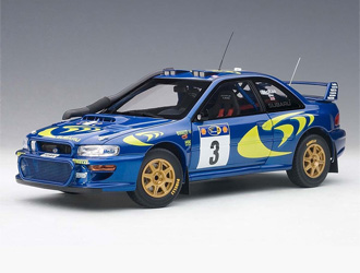 This Subaru Impreza WRC (Colin McRae – Safari Rally 1997) Diecast Model Car is Blue and features working steering, wheels and also opening bonnet with engine, boot, doors. It is made by AUTOart and is 1:18 scale (approx. 24cm / 9.4in long).