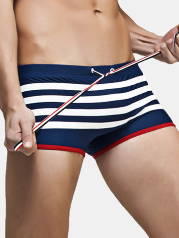 SUPERBODY Fashion Swimming Swimsuits Hot Spring Surf Navy Stripes Low Waist Boxers Trunks for Men