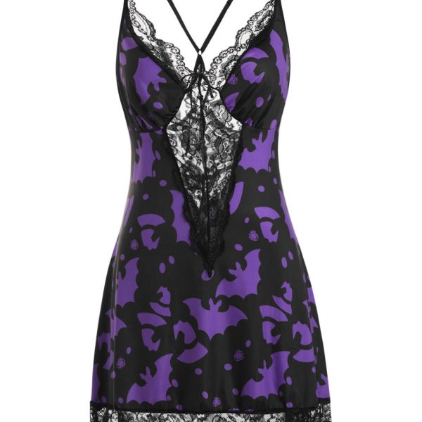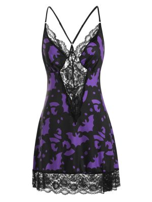 Be the first to review “T Back Lace Panel Spider Print Halloween Plus Size Babydoll”