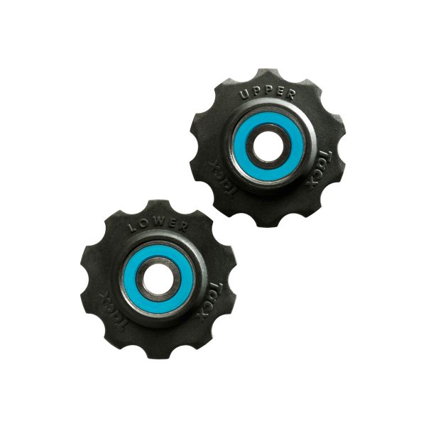 Ceramic (Si3N4) with Teflon. These jockey wheels are perfect when you want to save as much energy as you can on long distance rides. Decreasing friction was key when developing this product. The bearings are made out of Si3N4, a kind of ceramic known for its low friction character, and lubricated with grease to minimize maintenance requirements. Teflon is added to the wheel, which reduces friction with the chain. Finally, a low-friction seal is used to reduce friction with the bearings to a minimum. All these aspects together make this a one of a kind jockey wheel with which you can save energy on a long ride, but also with regards to maintenance.