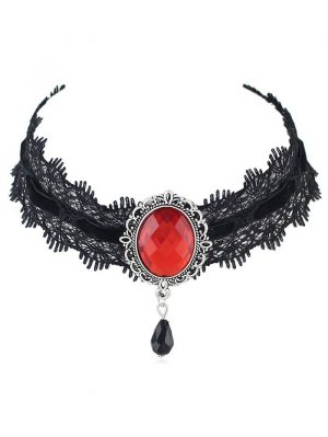 Be the first to review “Teardrop Rhinestone Lace Choker Necklace”